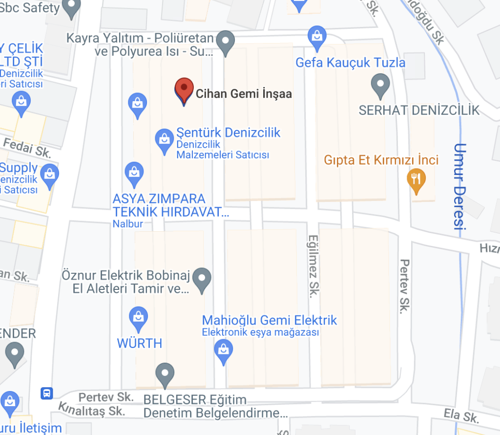 BİZE ULAŞIN! Adres Evliya Çelebi Mahallesi, Fersah Sokak, Giptaş Sanayi Sitesi, F Blok No: 6 Tuzla/İstanbul Telefon 0 216 447 08 25 Telefon 0 532 443 16 63 Email cihanship@cihanship.com